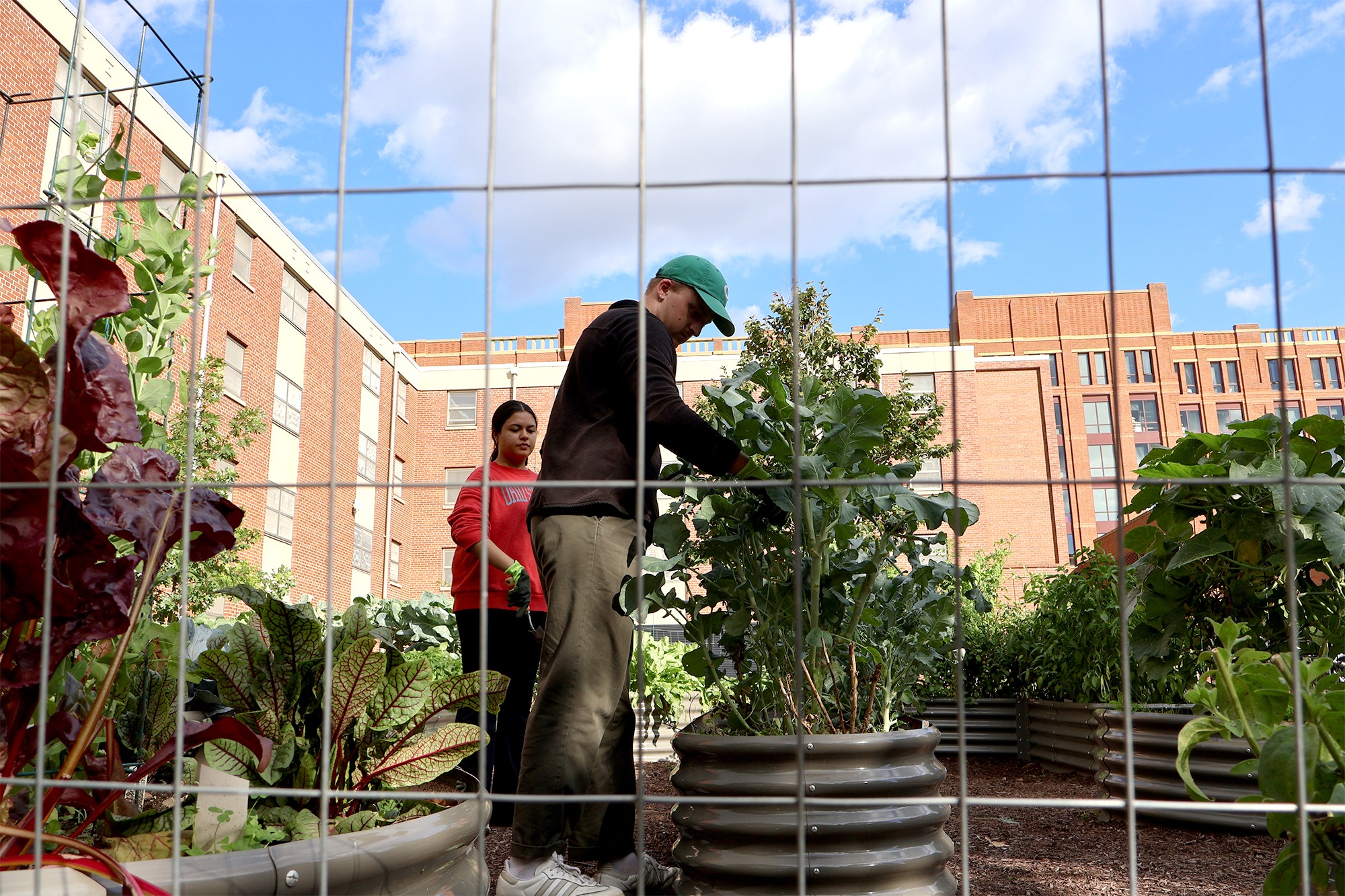 Treg Sibert and Nithya Duddella co-lead the effort to create a community garden on campus, right next to Norton House at 2114 Neil Ave., Columbus, OH. To date, they have grown over 250 different plants representing 50 species, amassing nearly 40 volunteers to help support their mission. The garden is open and free to all.